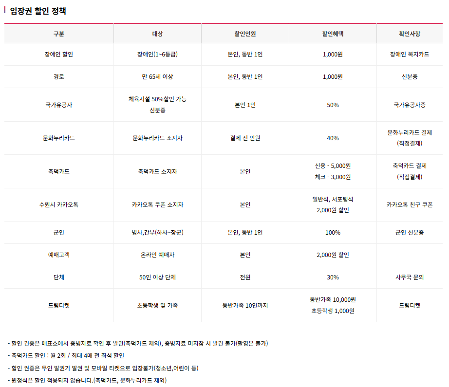 - 예약 가능 시간: 경기 7일 전 오후 2시부터 오픈