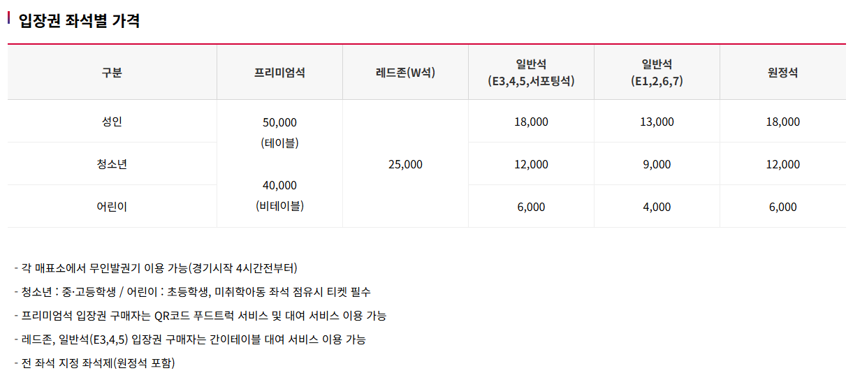 - 예매 가능 시점: 경기 3~7일 전부터 가능