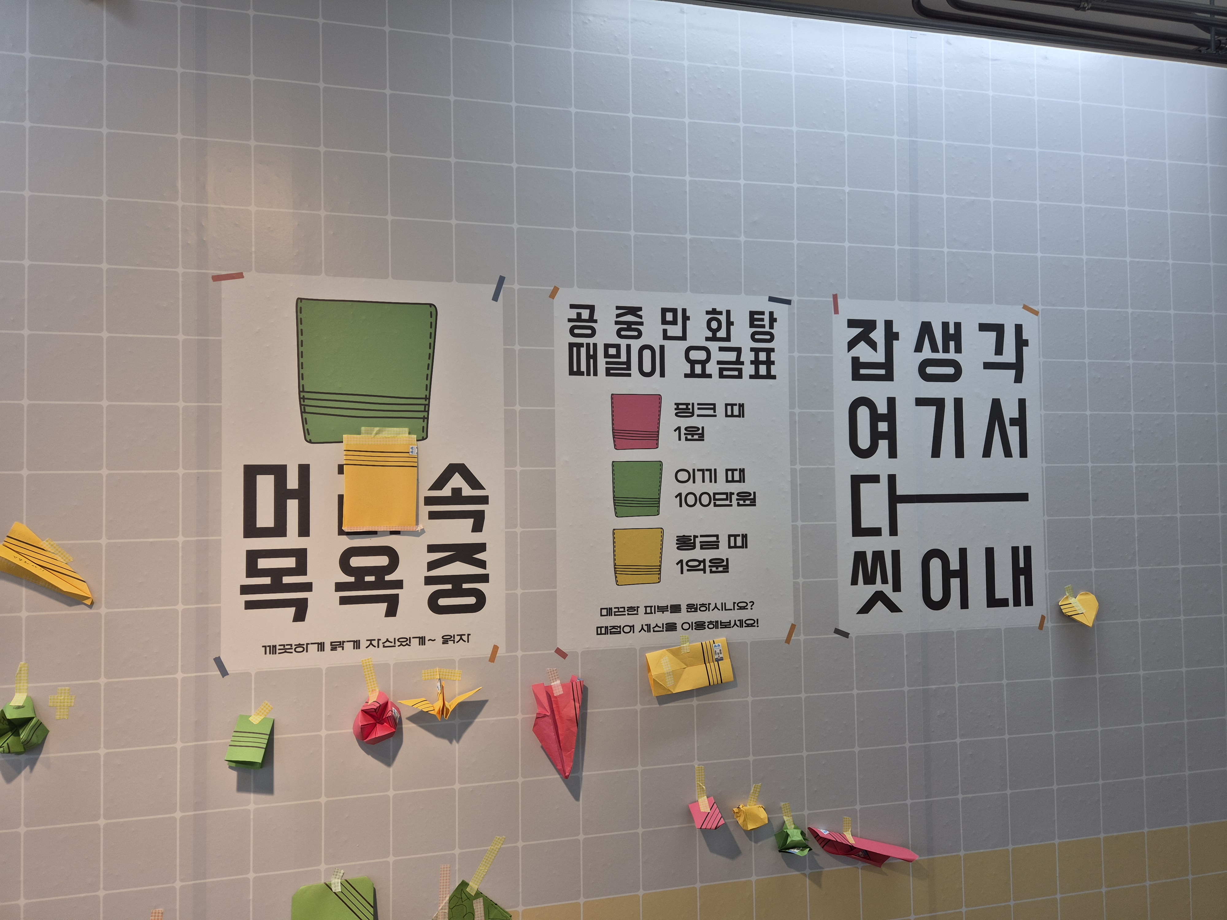 아참! 공중만화탕 전시회에 들어서면 때밀이 수건과 동일한(?) 색종이를 나눠줍니다. ㅎㅎ