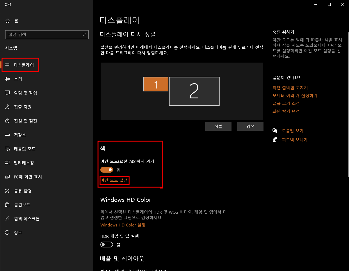 윈도우10/11 야간 모드 설정 방법