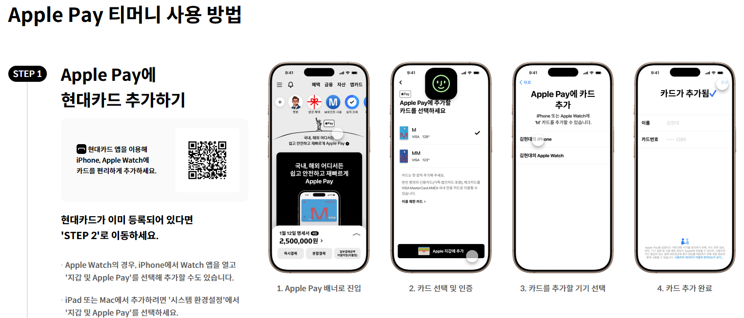 ⚠️ 중요! 현재 현대카드만 애플페이를 지원합니다.