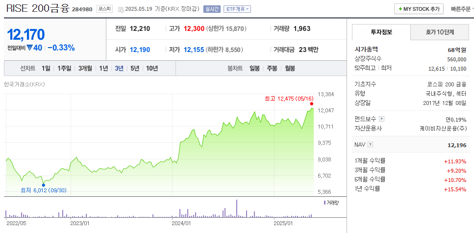 2️⃣ RISE 200금융 (KB자산운용)