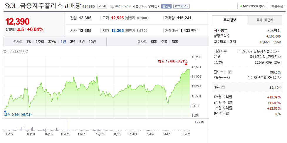 4️⃣ SOL 금융지주플러스 고배당 (신한자산운용)