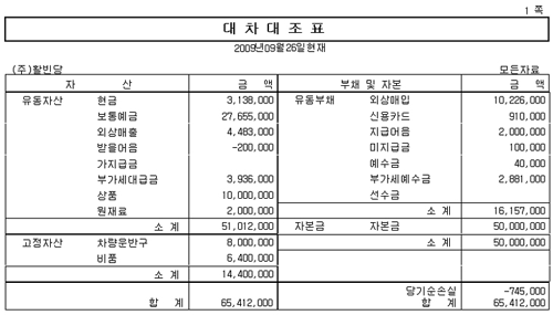 | 대차대조표(B/S - Balance Sheet) | 자산, 부채, 자본의 현재 상태 |