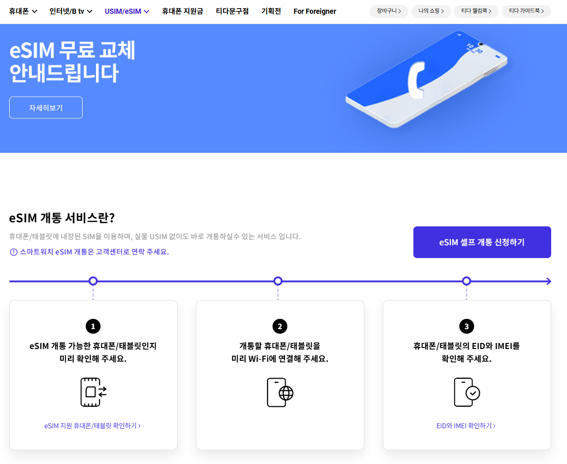 - SKT eSIM 셀프 개통 URL : https://shop.tworld.co.kr/dsds/esim-main