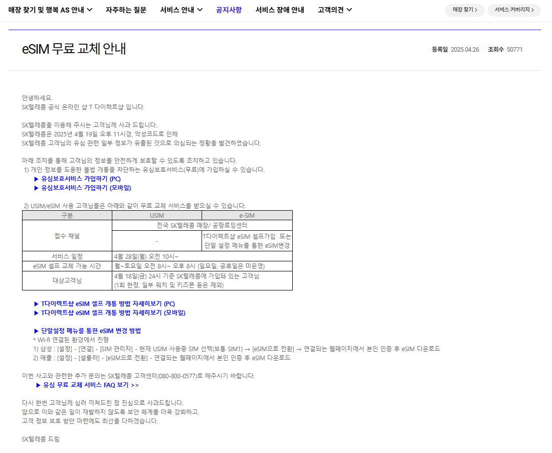 왜 SKT는 유심 사용자를 이심으로 교체 해주는 것에 대해서 아무 말이 없는지;;;